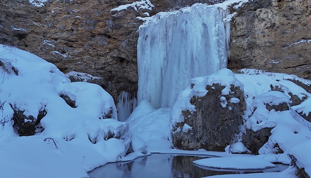 Üçoluk Göleti buz tuttu