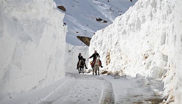 İlçeye ulaşmak için kar koridorunu geçiyorlar