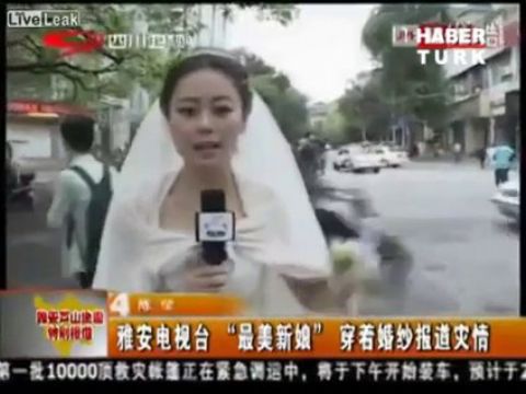 Depremi Gelinlikle Duyurdu